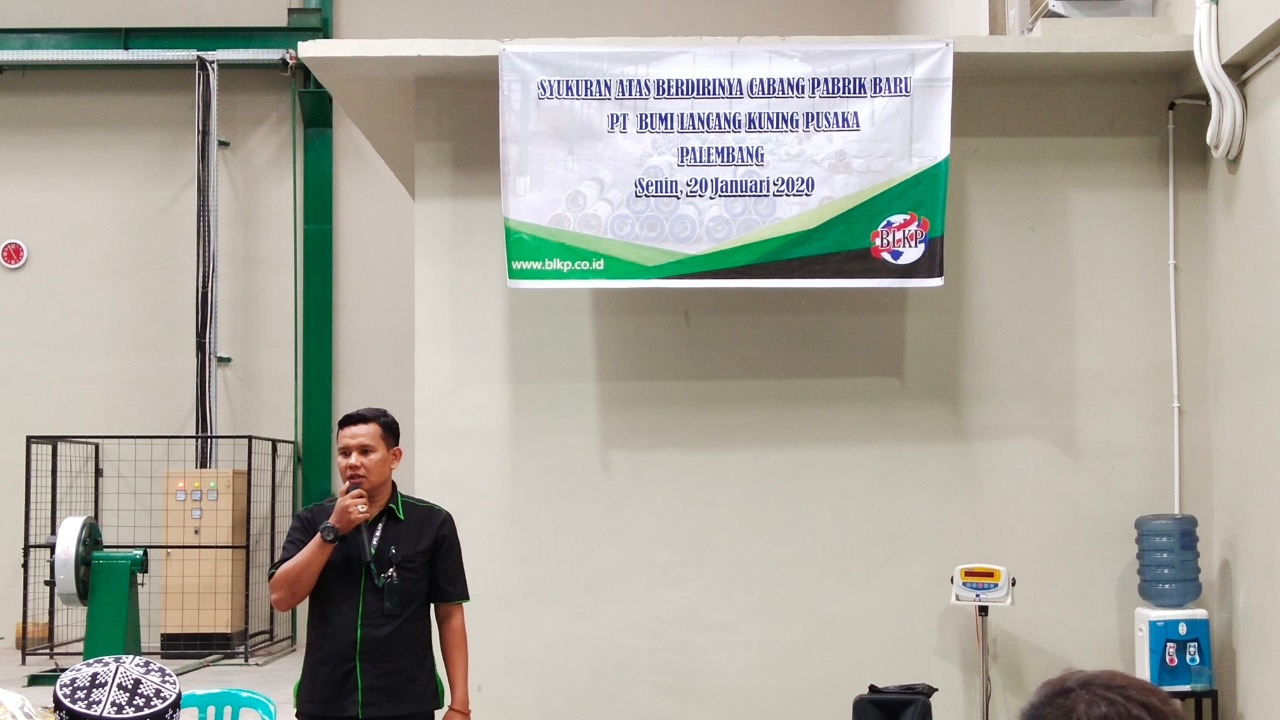 Sebagai bentuk ucapan rasa syukur atas berdirinya pabrik baru PT. Bumi Lancang Kuning Pusaka. Kepala pabrik cabang Palembang Bapak Hari Wirdianto, mengadakan acara syukuran menempati kantor barunya yang berada di Pergudangan Griya Bandara Indah, Jl. Tanjung Api-Api I No. 5-10 RT.016/RW.004, Talang Jambe, Kec. Sukarami, Kota Palembang Sumatera Selatan pada hari senin 20 Januari 2020.